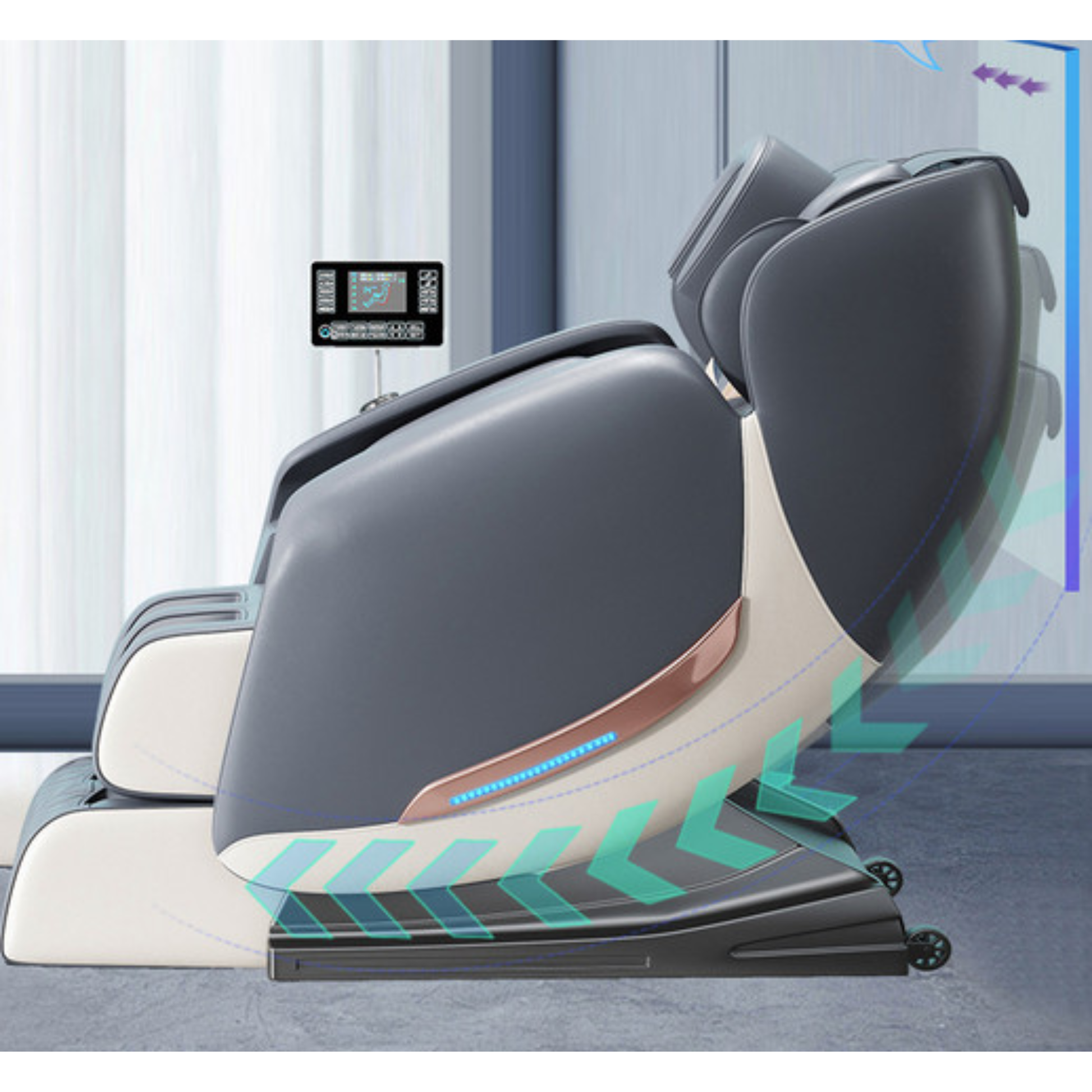 Met het overzichtelijke bedieningspaneel stel je de stoel eenvoudig af naar jouw wensen. Kies moeiteloos uit verschillende massageprogramma’s, pas de intensiteit aan en ontdek met één druk op de knop de ultieme ontspanning. Alles binnen handbereik, volledig afgestemd op jouw comfort.